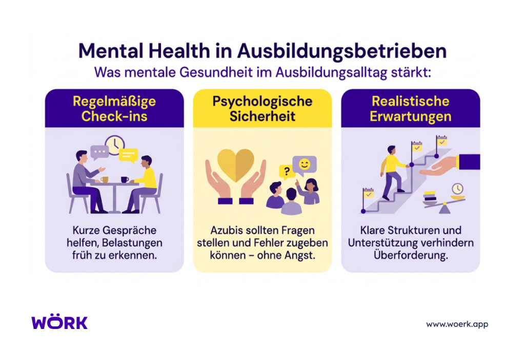 Mentale Gesundheit braucht Balance. Unternehmen, die zuhören, transparent sind und ein entspanntes Miteinander fördern, gewinnen motivierte Nachwuchskräfte. WÖRK hilft dabei, genau diese Haltung sichtbar zu machen. Ehrlich, realistisch und ohne Show.
